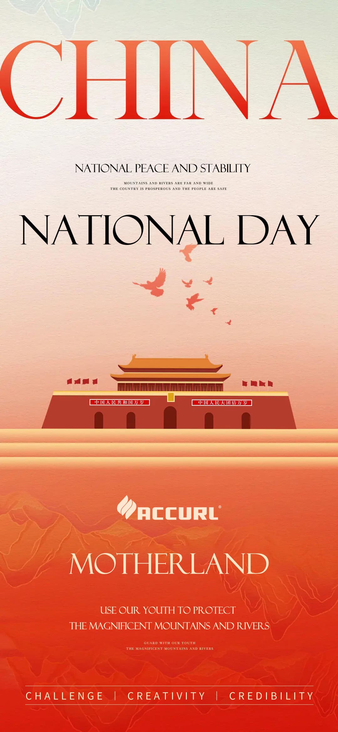 Soixante-seize années de persévérance, contre vents et marées, ont forgé l'éclat d'aujourd'hui. La prospérité du pays a offert à notre entreprise les bases les plus solides et les conditions les plus favorables pour sa croissance. Rétrospectivement, chaque réussite d'Accurl doit beaucoup aux efforts assidus et à la sagesse de chaque employé, ainsi qu'à la confiance indéfectible et à l'étroite collaboration de chaque client. En cette joyeuse occasion de convergence de deux fêtes, nous exprimons notre plus profonde gratitude à tous les acteurs et célébrons cette époque remarquable.